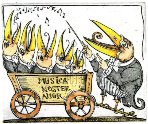 vom Künstler persönlich Stück für Stück per Hand gedruckte und colorierte Radierung
